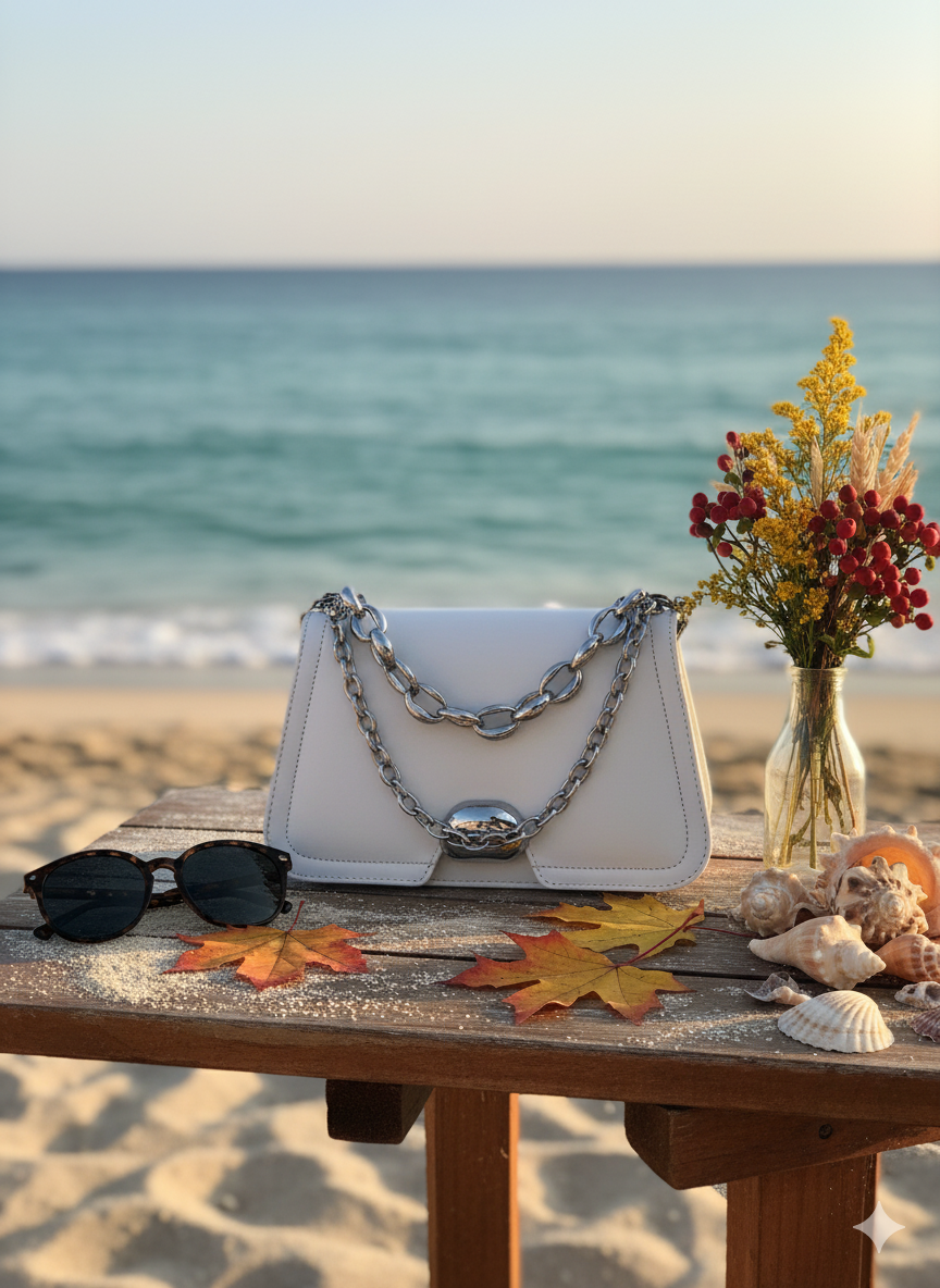 کیف زنانه سفید وارداتی دو زنحیره مجلسی۲٬۲۰۰٬۰۰۰ تومان